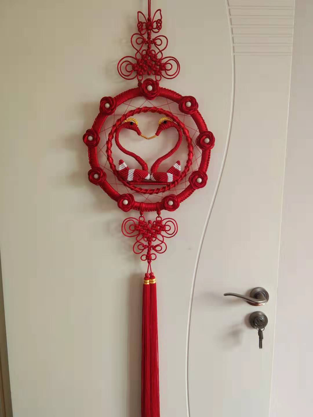 晋阳中国结编制过程看似简单,实则工艺十分繁琐,需要先将构思绘成草图,结合寓意及规制要求,编排绳结布局,完成设计初稿,根据整体的设计效果,选择不同品质和色彩的线材,依据不同设计和用途,对线材的粗细、长度、软硬、色彩都有非常严苛的要求,配件的材质、大小等,非常考究,需要借助工具进行精确的测量与确保设计效果完美呈现。